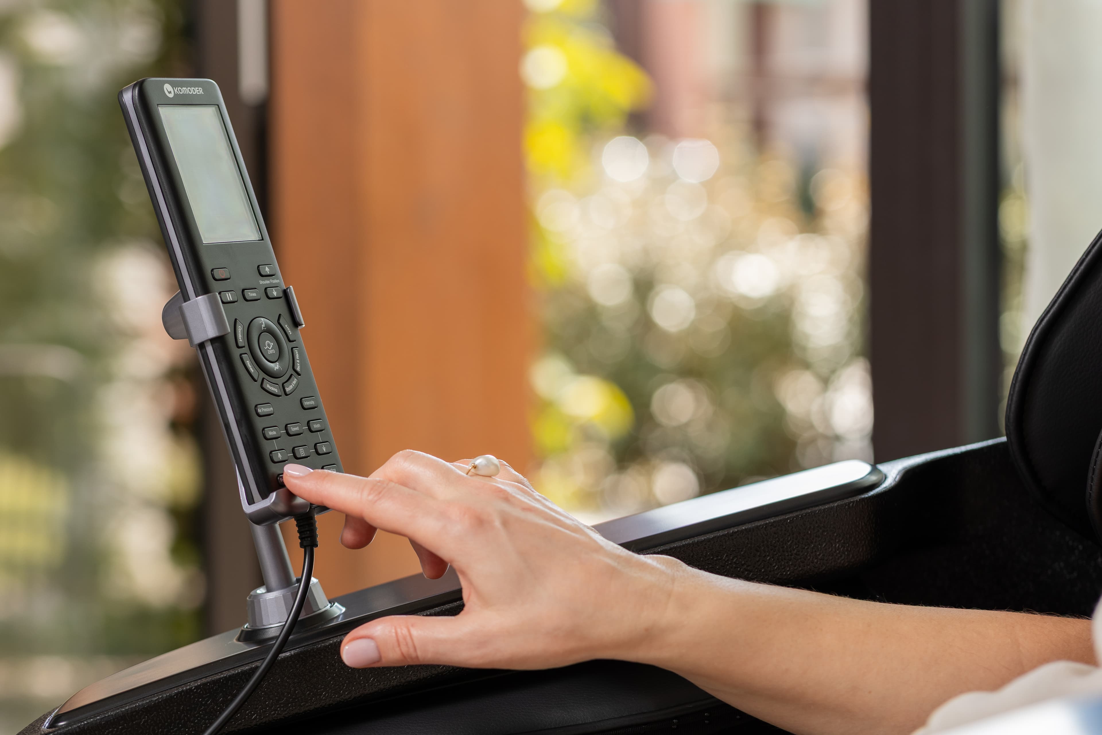 A masszázsfotelt vezérlő távirányító rendkívül egyszerű, használata könnyű. Egyetemes ábrákat és intuitív kezelőfelületet használ, formatervezése ergonomikus, a felhasználó pedig bármikor könnyen hozzáférhet.